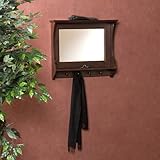 This Entryway Mirror is a unique addition to your home or office. This Entryway Mirror is a unique addition to your home. Perfect for your front hallway or main entrance, this piece is timeless. From its French inspired curves to its practicality. This mirror has four hooks, great for coats, scarves or even your four legged family member's leash!. Type: Mirror. Color / Finish: Brown. 24" W x 6" D x 21" H. Rich Espresso Finish . Maple Veneer/Hardwoods/Mirror. Assembly required